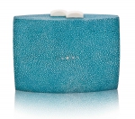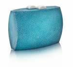 Minaudière en galuchat, l'intérieur en suédine, les finitions en ébène ou en os.