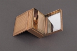 Ref. ATAB9461Boîte à mouches en or de forme rectangulaire à double charnière, entièrement guillochée et bordée de frises de laurier. Avec son pinceau.
