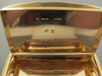 Boite en or de forme rectangulaire ornée sur le couvercle et le fond de panneaux guillochés, les côtés de feuilles et fleurs stylisées sur fond amati. A l'intérieur du couvercle est gravé "à mon ami".