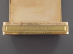 Boite en or de forme rectangulaire ornée sur le couvercle et le fond de panneaux guillochés, les côtés de feuilles et fleurs stylisées sur fond amati. A l'intérieur du couvercle est gravé "à mon ami".
