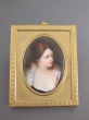 Miniature sur émail dans un cadre rectangulaire en bronze doré représentant une jeune femme.